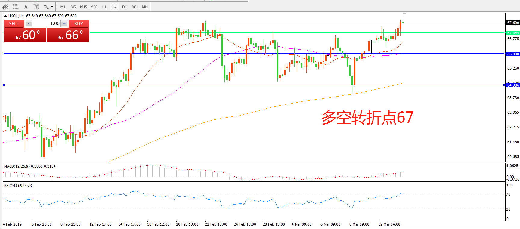 多空转折点:67.00