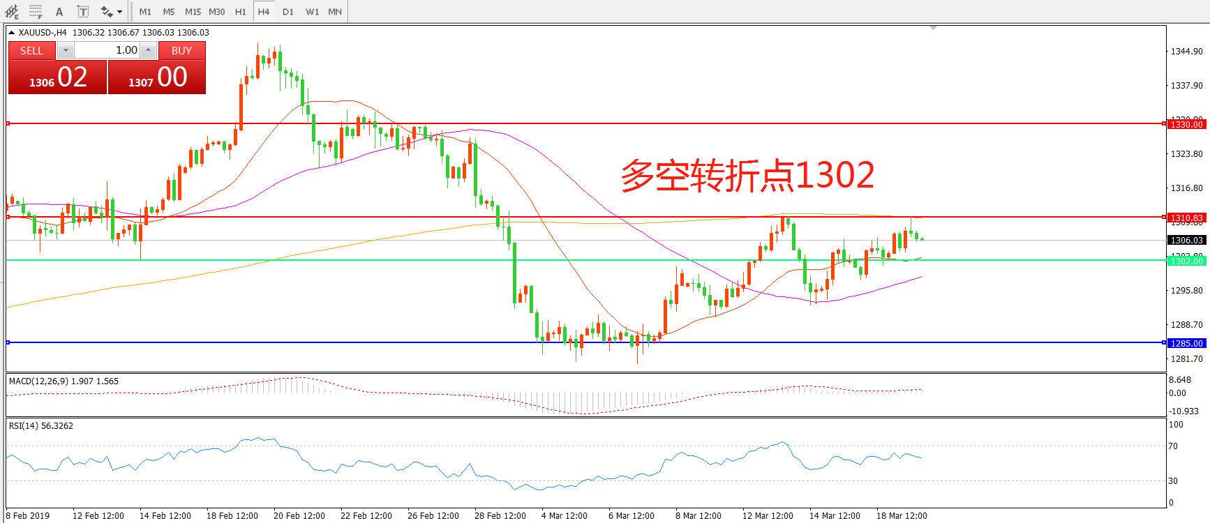 交易策略:在1302.00之上看涨,目标1310.00  1316.00