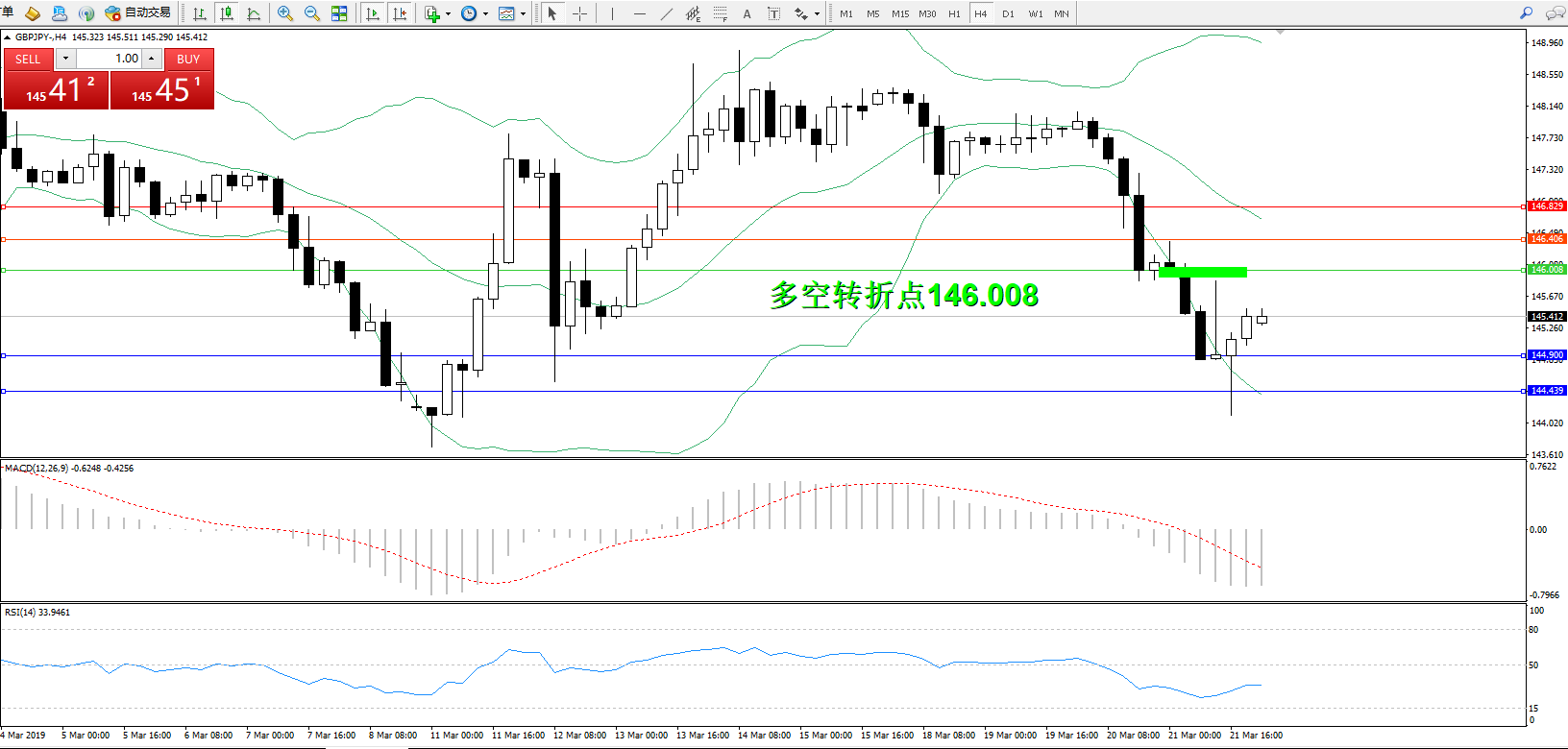 交易策略:146.008下方看跌,目标144.900144.439