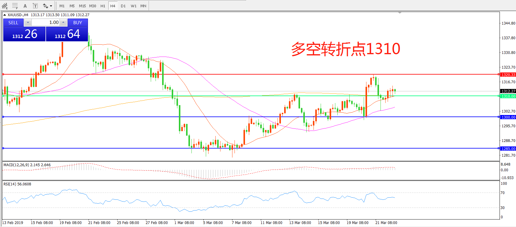 交易策略:在1310.00之上看涨,目标1320.00 1330.00