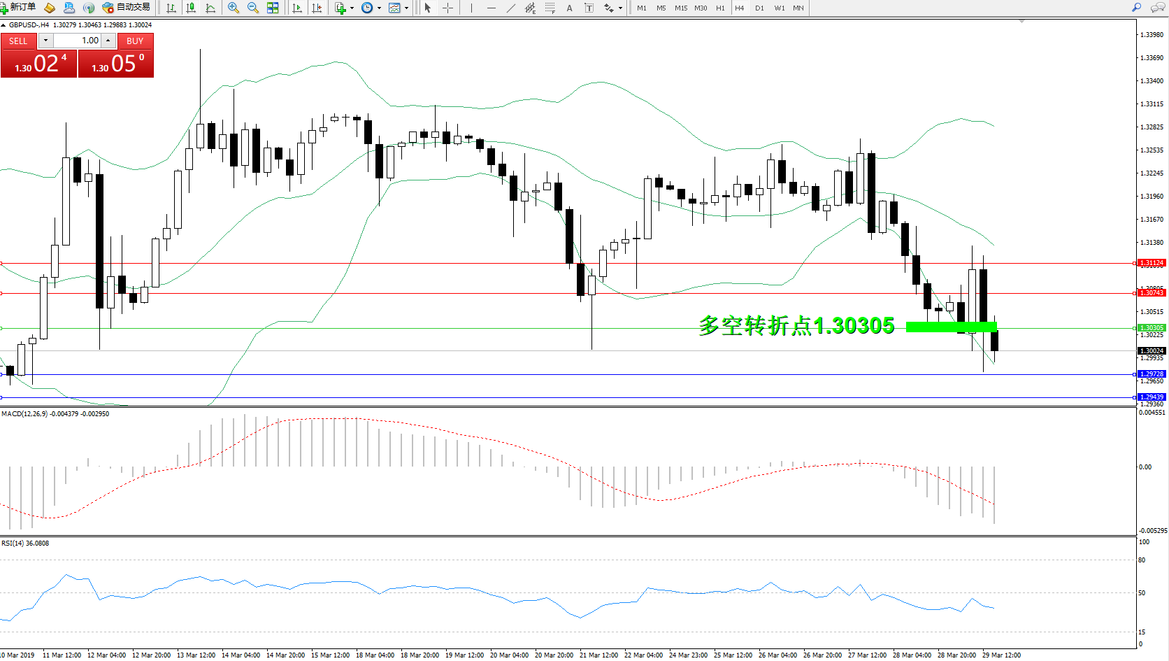 交易策略:1.30305下方看跌,目标1.297281.29439