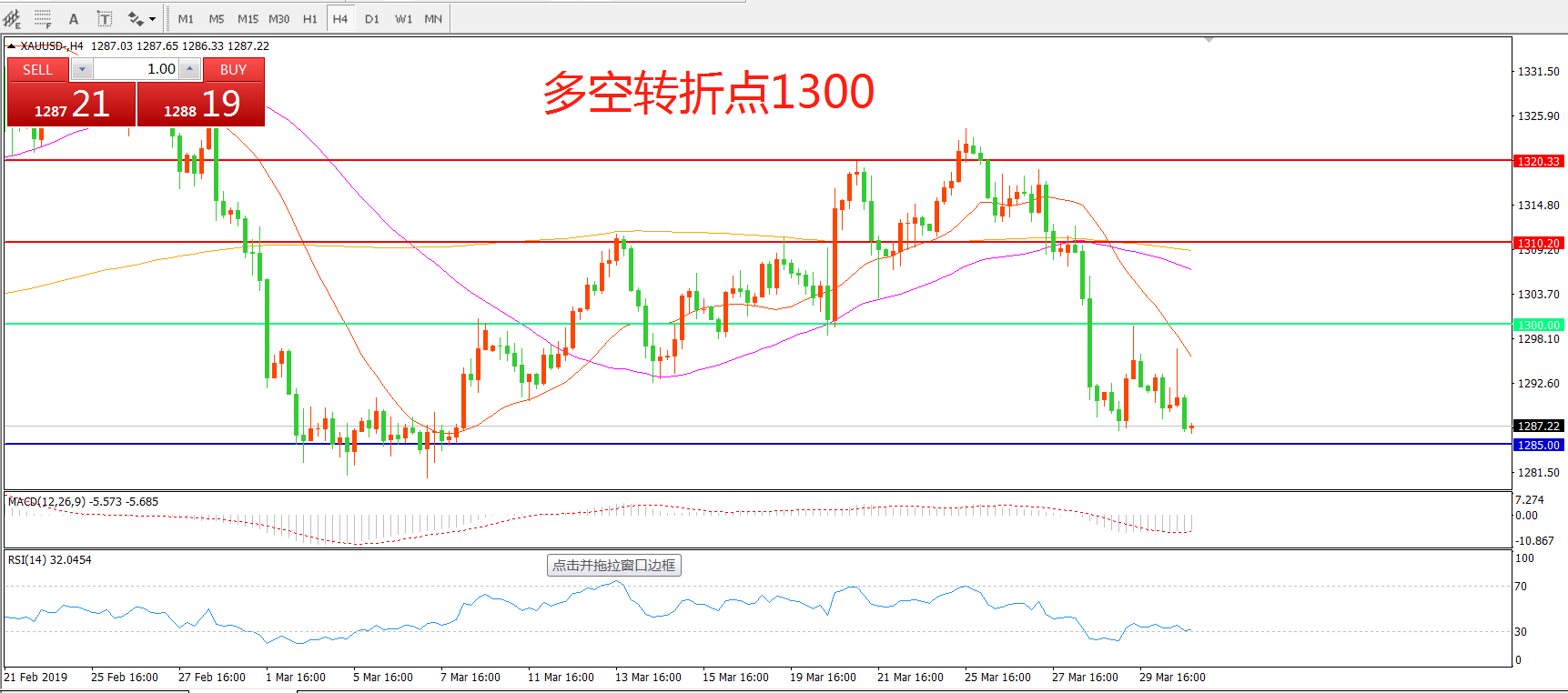 美国经济数据好坏参半。继1月超预期反弹后,美国2月零售销售意外环比下滑0.2%,不及预期。制造业则超预期反弹,美国3月ISM制造业指数55.3,高于预期54.5和前值54.2,一度令美元指数收复早前失地。金价一度大幅反弹,但最终回吐全部涨幅,收报于1287.32美元/盎司。