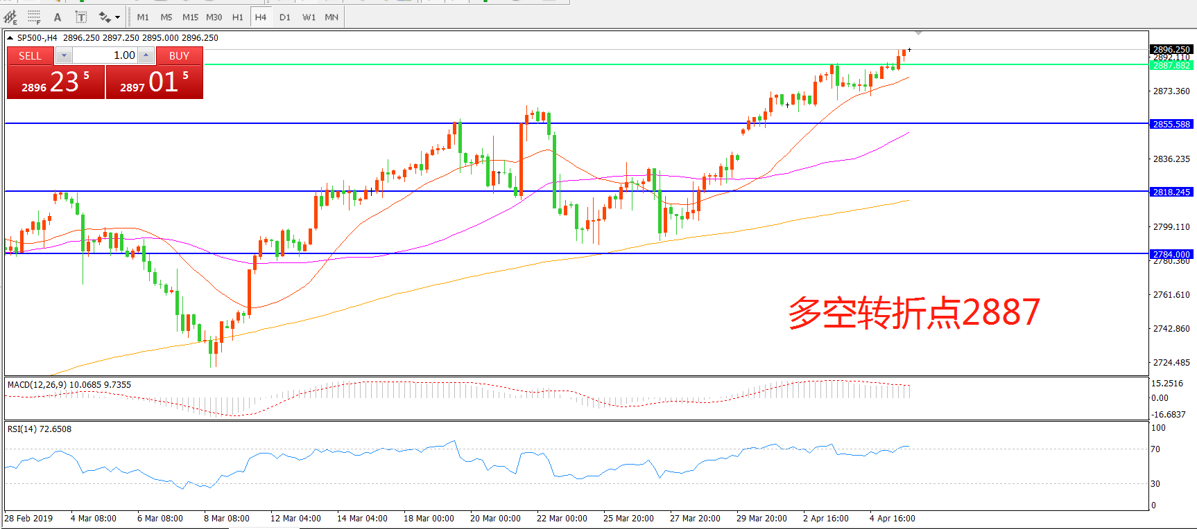 多空转折点:2887.00