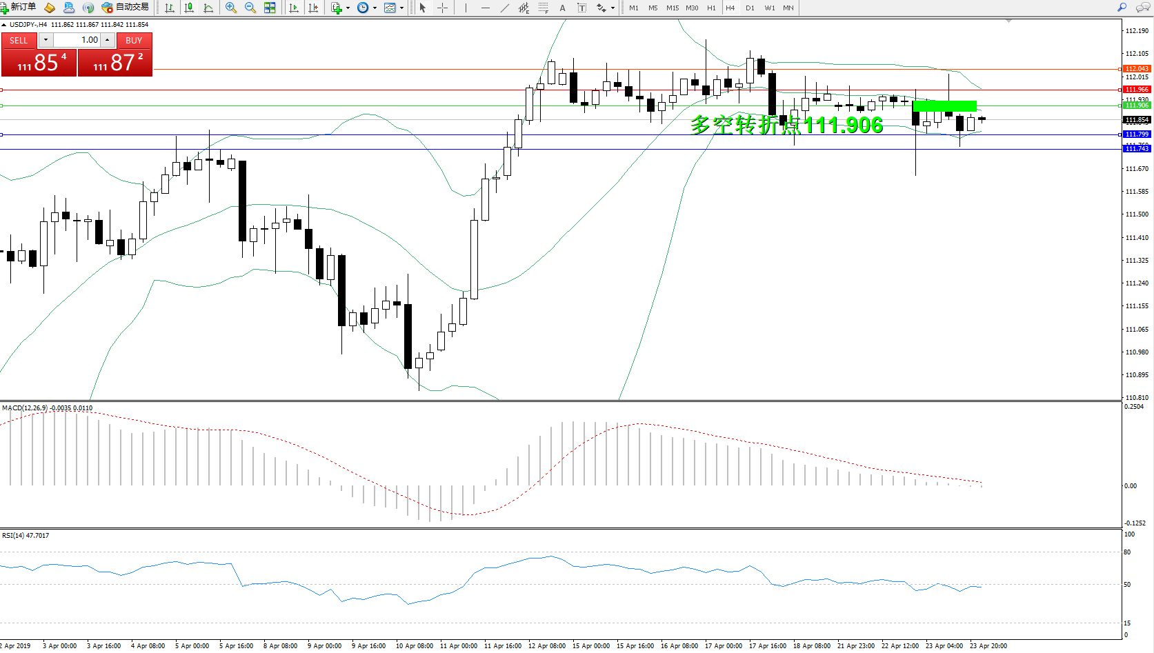 备选策略:111.906上方看涨,目标111.966、112.043