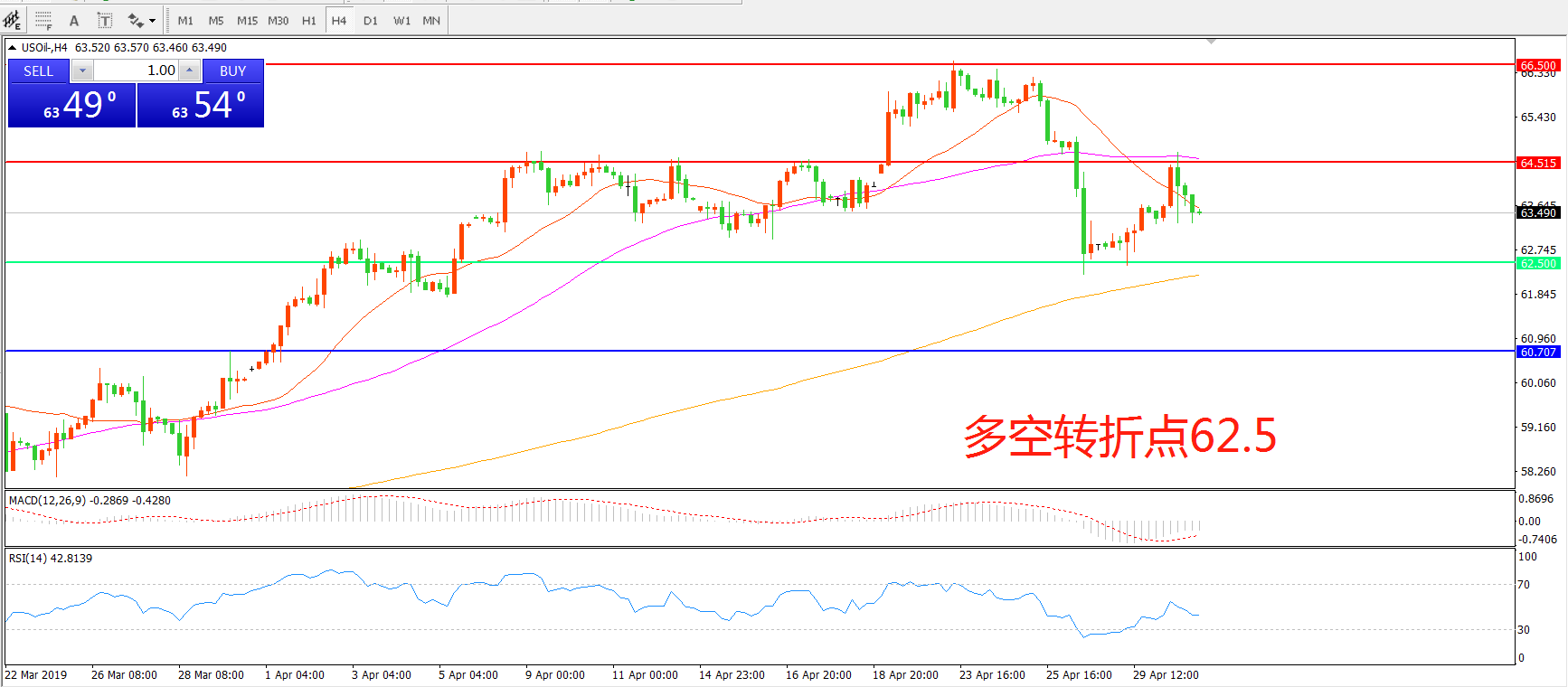 多空转折点:62.50