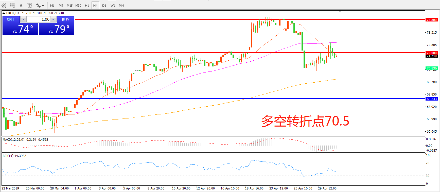 多空转折点:70.50