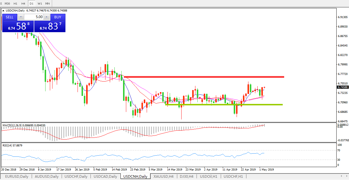 交易策略: 在6.6990之上,看涨,目标价位为6.7845,然后为6.8185。