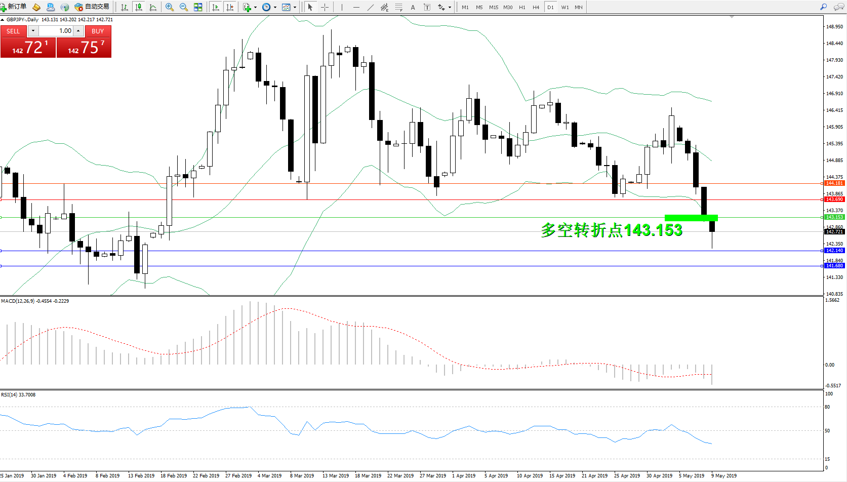 交易策略:143.153下方看跌,目标142.140141.680