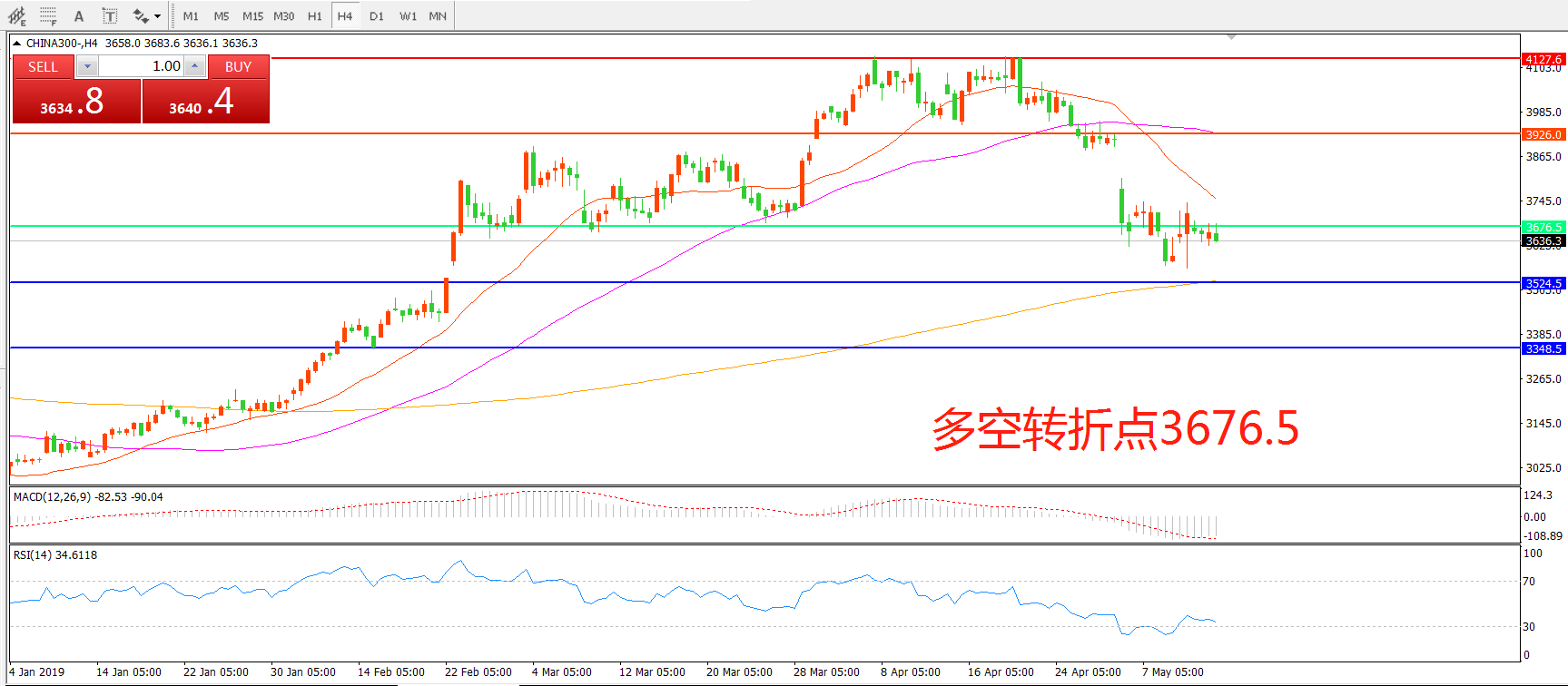 交易策略:在3676.50之下看跌,目标3524.50 3348.50