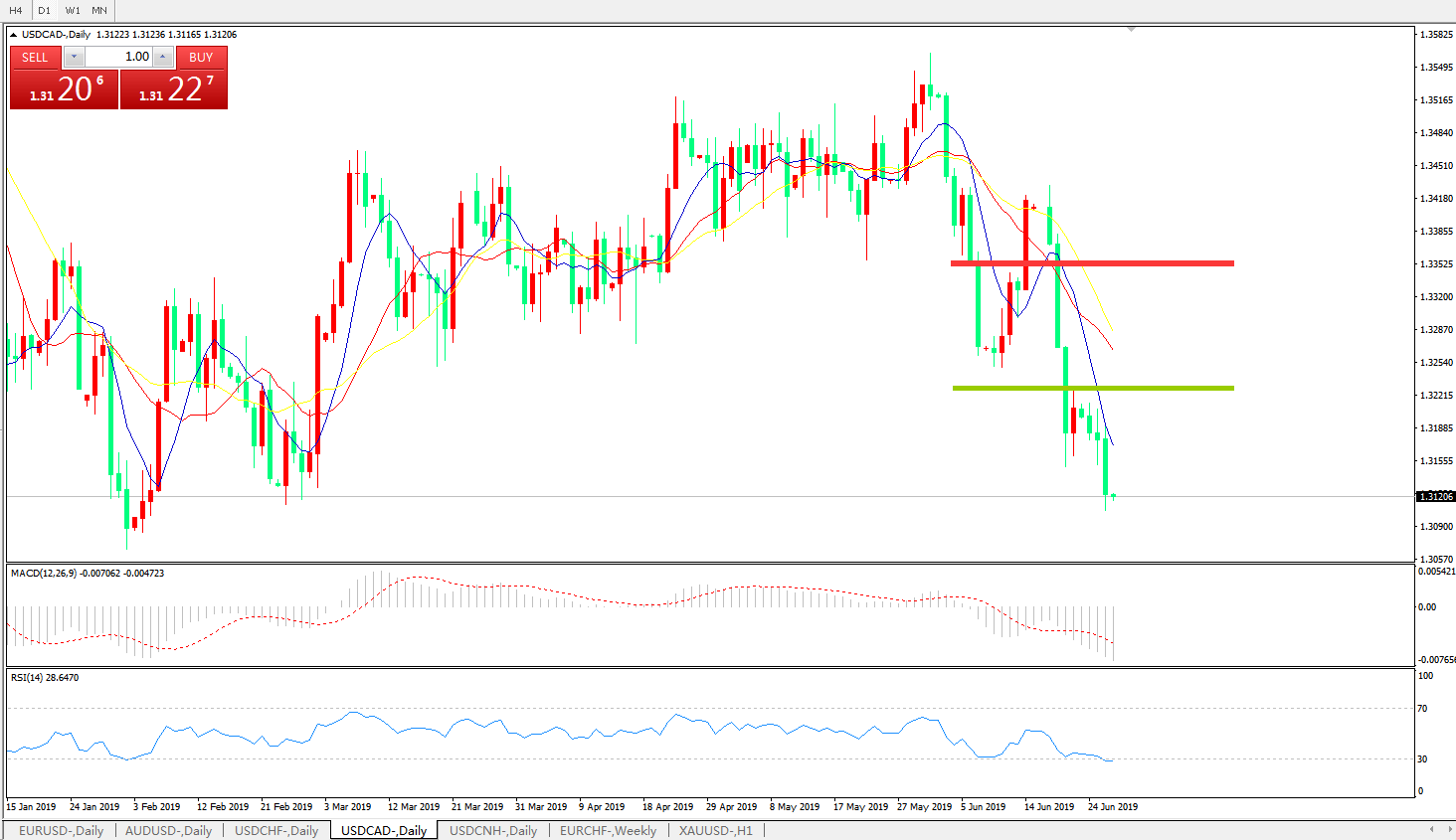 美元兑加元USDCAD 日线图: