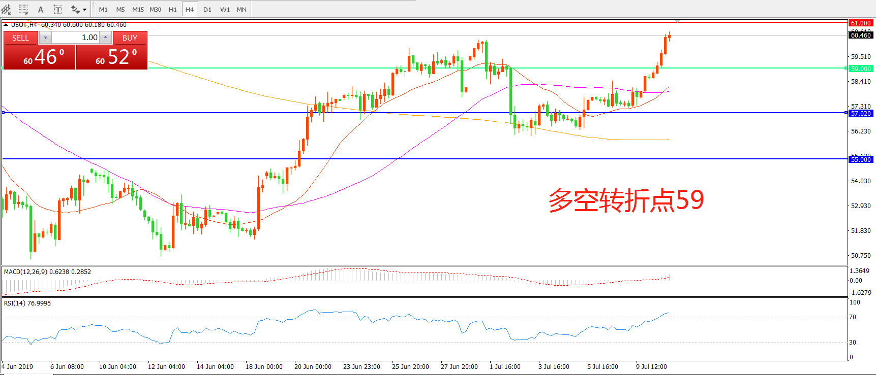 交易策略:在59.00之上看涨,目标61.00 64.00