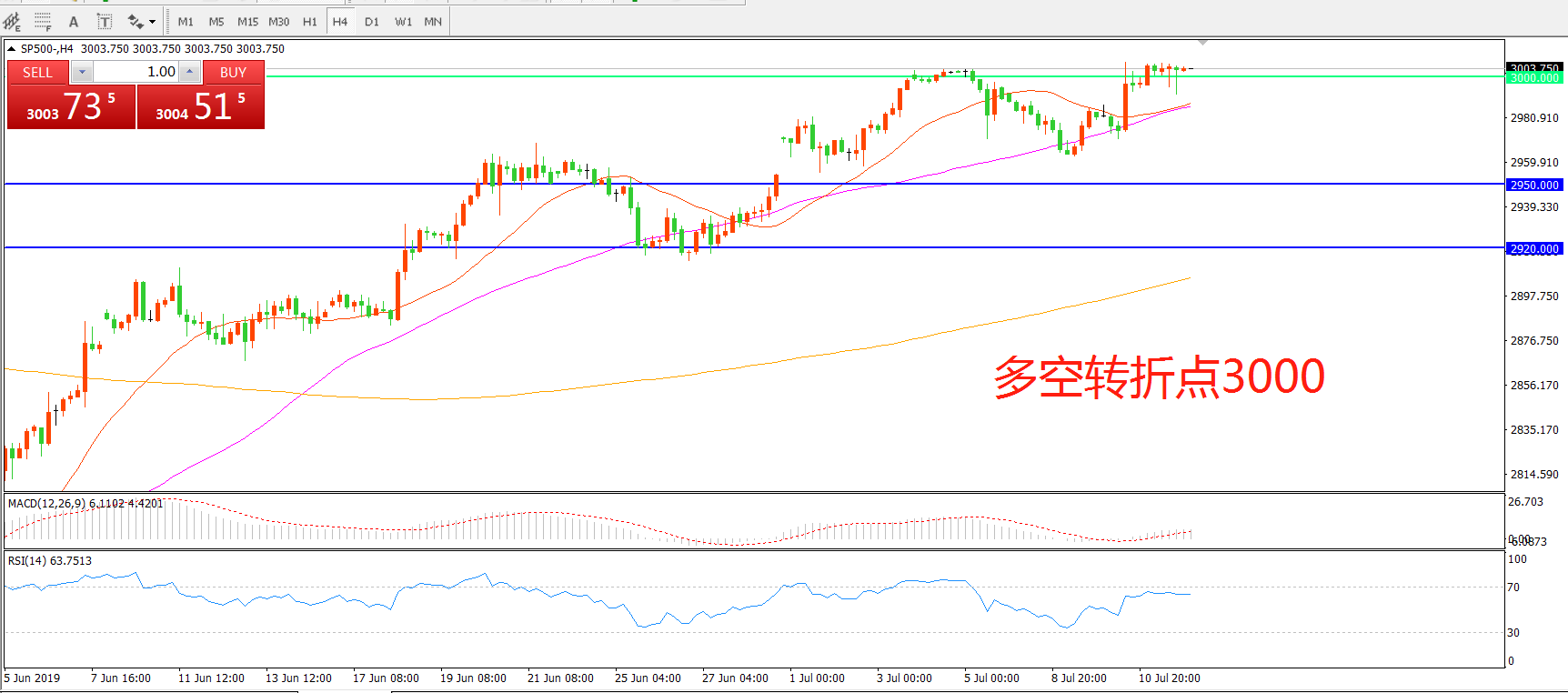 多空转折点:3000.00