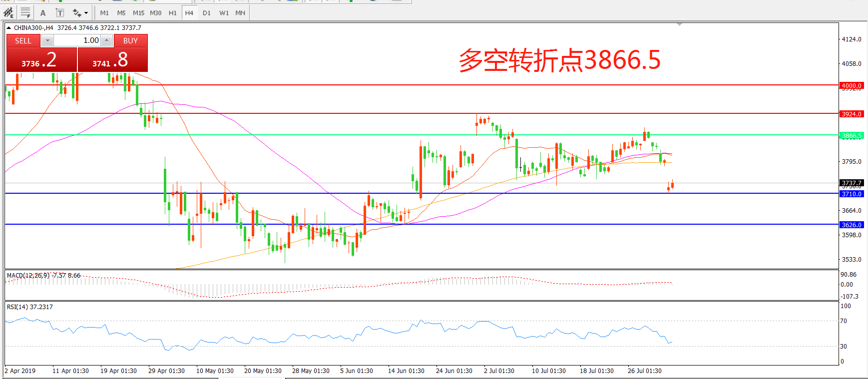 沪深300指数CHINA300 4小时图