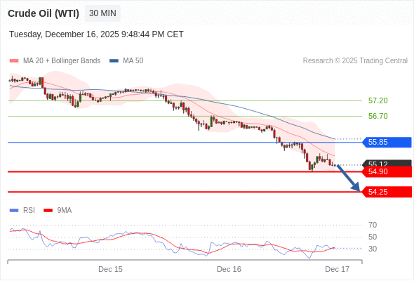 在 55.85 之下,看跌,目标价位为 54.90 ,然后为 54.25 。