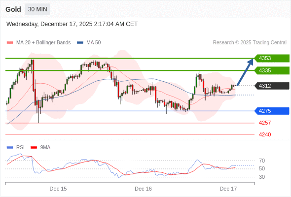 在 4275 之上,看涨,目标价位为 4335 ,然后为 4353 。