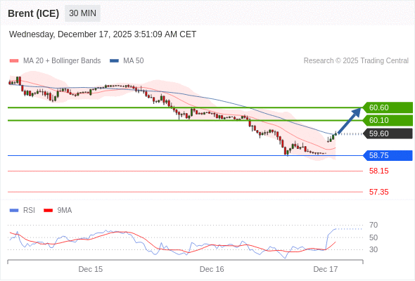 在 58.75 之上,看涨,目标价位为 60.10 ,然后为 60.60 。