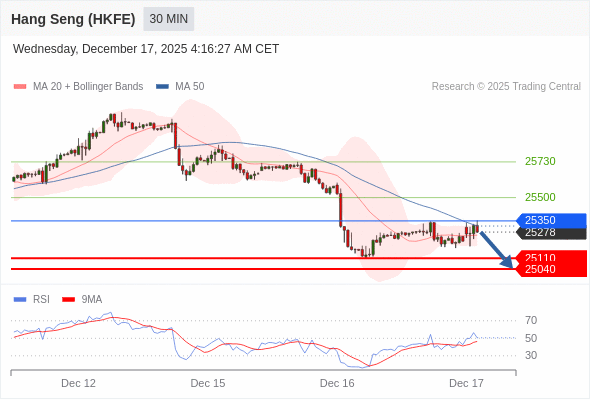 香港恒生指数期货 当日内: 短期关键阻力位在25350。