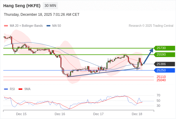 交易策略: 在 25250 之上,看涨,目标价位为 25590 ,然后为 25730 。