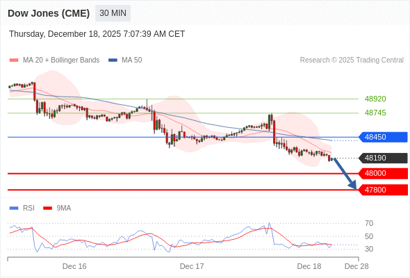 在 48450 之下,看跌,目标价位为 48000 ,然后为 47800 。