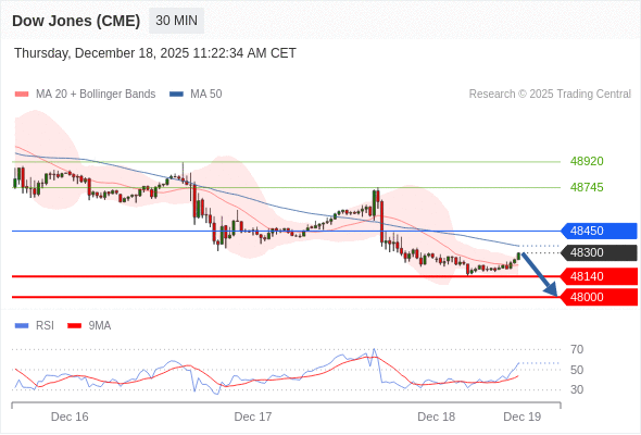 交易策略: 在 48450 之下,看跌,目标价位为 48140 ,然后为 48000 。