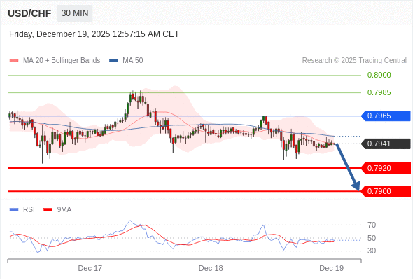 在 0.7965 之下,看跌,目标价位为 0.7920 ,然后为 0.7900 。