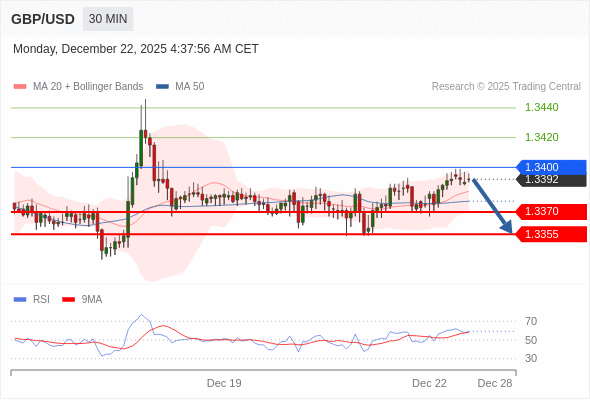 在 1.3400 之下,看跌,目标价位为 1.3370 ,然后为 1.3355 。