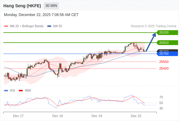 在 25700 之上,看涨,目标价位为 25910 ,然后为 26100 。
