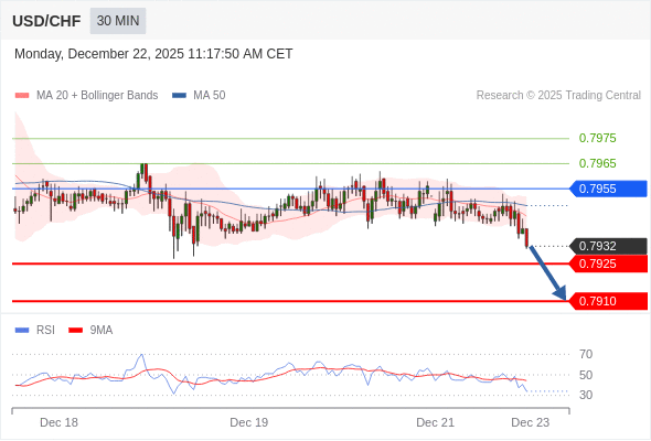 在 0.7955 之下,看跌,目标价位为 0.7925 ,然后为 0.7910 。