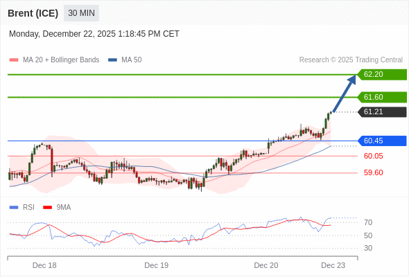 在 60.45 之上,看涨,目标价位为 61.60 ,然后为 62.20 。