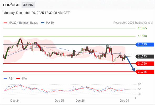 在 1.1795 之下,看跌,目标价位为 1.1760 ,然后为 1.1745 。
