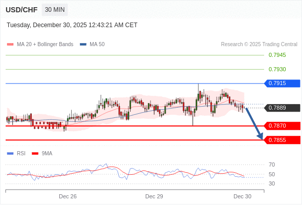 交易策略: 在 0.7915 之下,看跌,目标价位为 0.7870 ,然后为 0.7855 。