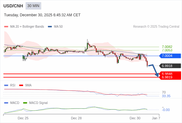 交易策略: 看跌,在 7.0004 之下。