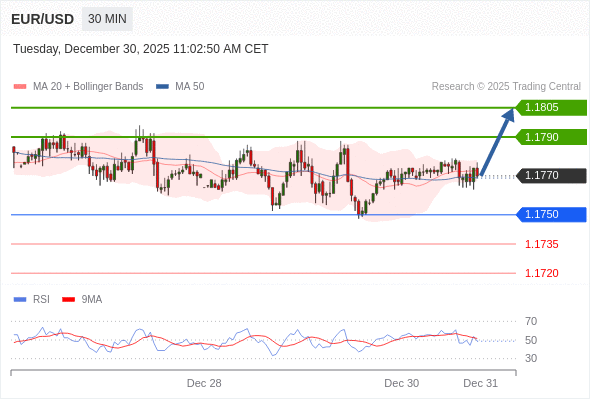 在 1.1750 之上,看涨,目标价位为 1.1790 ,然后为 1.1805 。