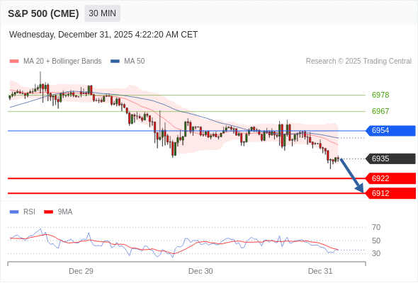 在 6954 之下,看跌,目标价位为 6922 ,然后为 6912 。