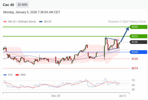 在 8149 之上,看涨,目标价位为 8222 ,然后为 8265 。