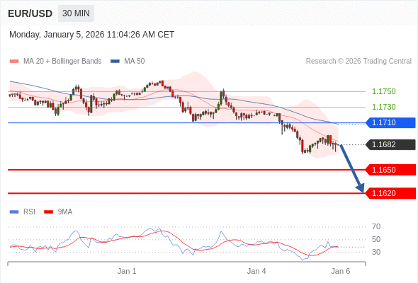 在 1.1715 之下,看跌,目标价位为 1.1640 ,然后为 1.1620 。