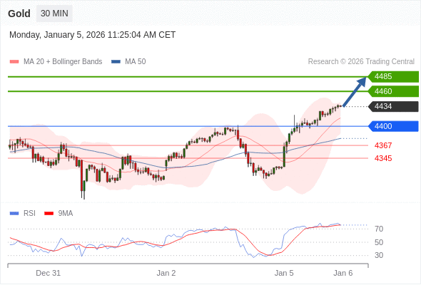 在 4400 之上,看涨,目标价位为 4460 ,然后为 4485 。