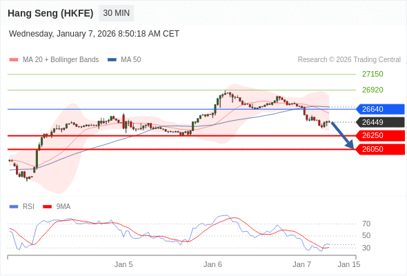 在 26640 之下,看跌,目标价位为 26250 ,然后为 26050 。