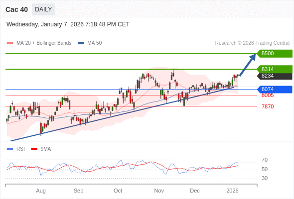 Cac 40 短线: 看涨。