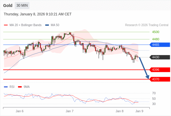 在 4465 之下,看跌,目标价位为 4396 ,然后为 4370 。