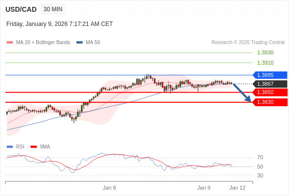 美元/加元 当日内: 期待1.3850。