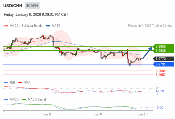 替代方案: 在6.9731以下,期待6.9684和6.9657。