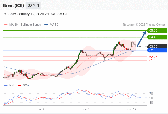 交易策略: 在 62.95 之上,看涨,目标价位为 64.40 ,然后为 65.10 。