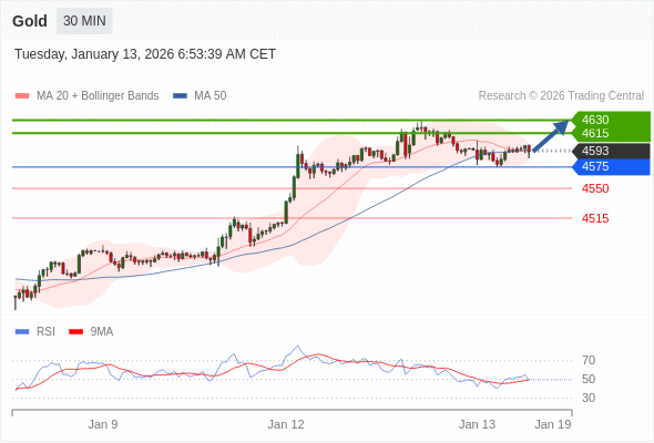 在 4575 之上,看涨,目标价位为 4615 ,然后为 4630 。