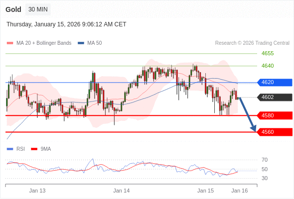 交易策略: 在 4620 之下,看跌,目标价位为 4580 ,然后为 4560 。