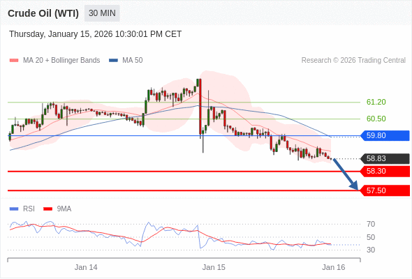 在 59.80 之下,看跌,目标价位为 58.30 ,然后为 57.50 。