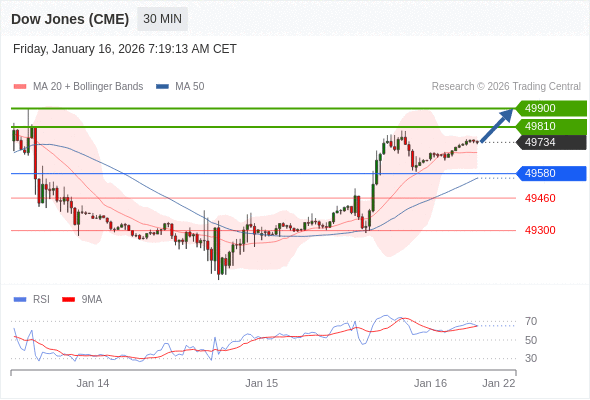 在 49580 之上,看涨,目标价位为 49810 ,然后为 49900 。