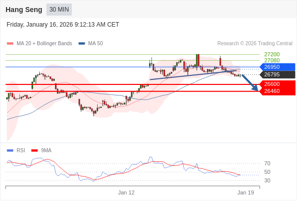 在 26950 之下,看跌,目标价位为 26600 ,然后为 26460 。