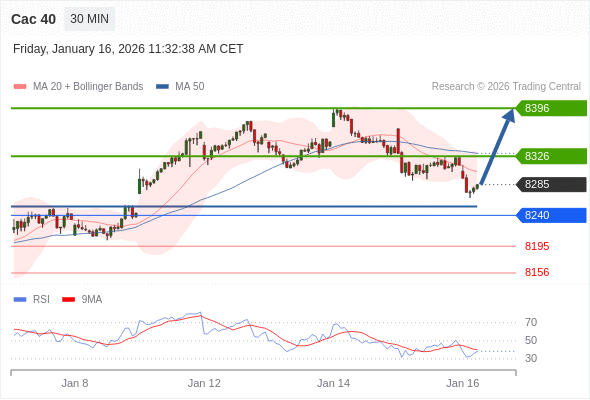 Cac 40 当日内: 超短线(当日内)支撑位在8240附近。