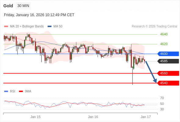 在 4600 之下,看跌,目标价位为 4560 ,然后为 4540 。